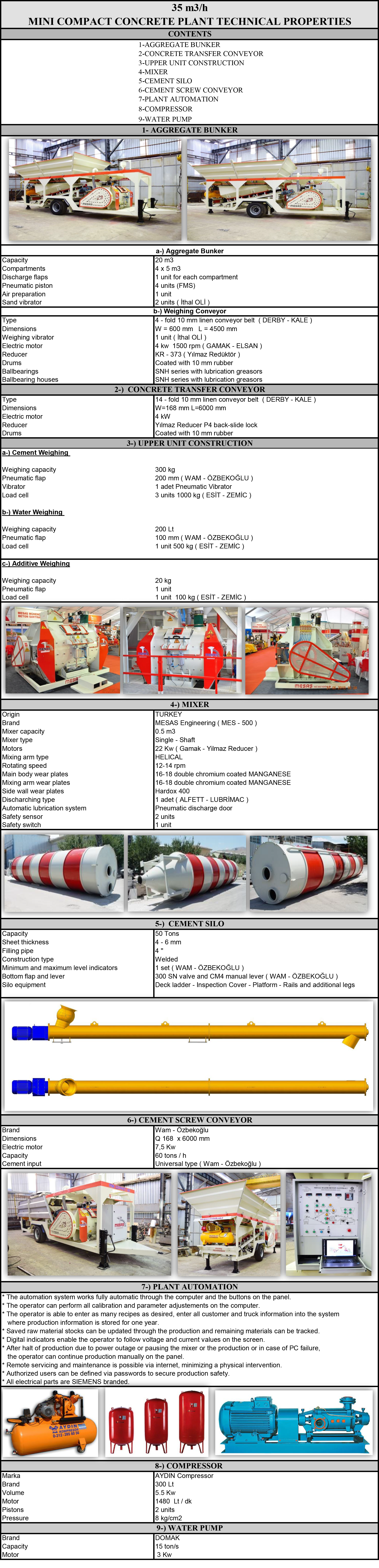 | AGGREGATE BUNKER | m3 | 4 x 5 = 20 |
